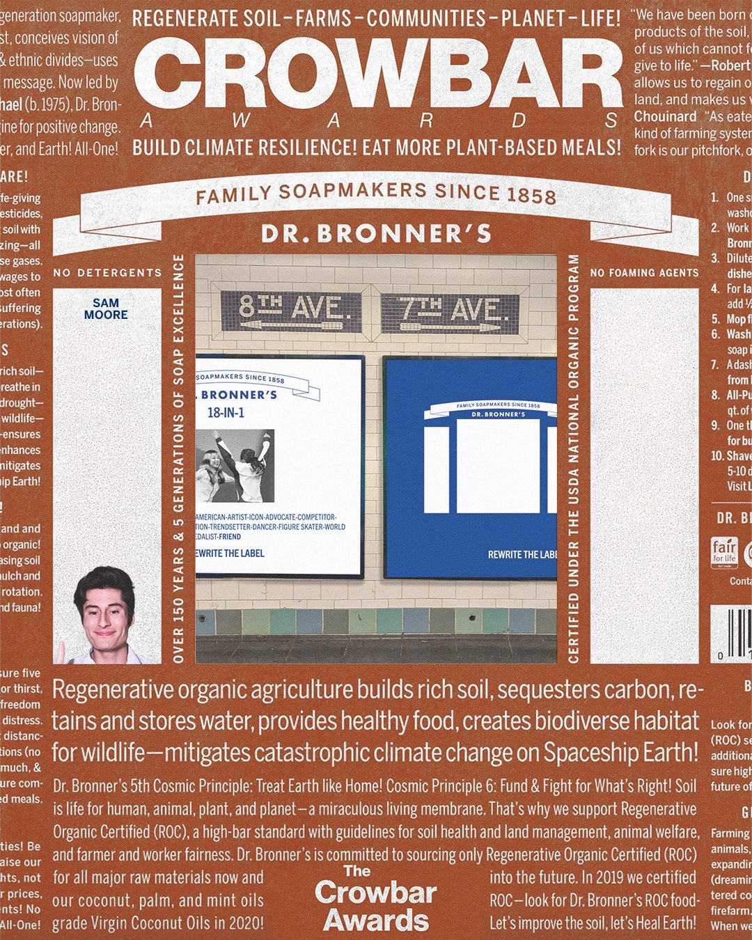 Target singles who think combo products look bad—show them Dr. Bronner’s 18-in-1 Soap is the effortless way to look good.